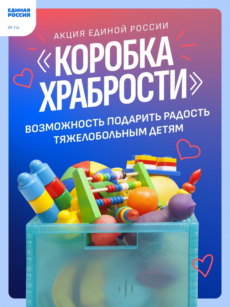 Сторонники Всероссийской политической Партии «ЕДИНАЯ РОССИЯ» традиционно в ноябре запускают акцию «Коробка храбрости» (далее – Акция), направленную на поддержку детей, находящихся на длительном лечении и реабилитации в медицинских учреждениях.
