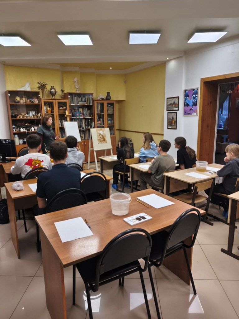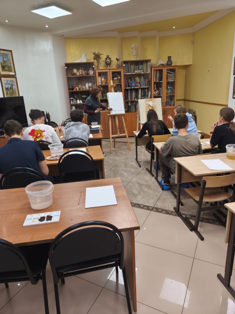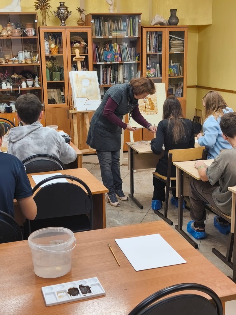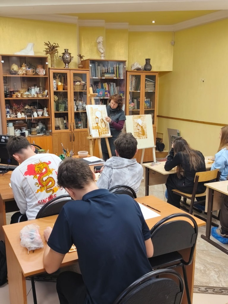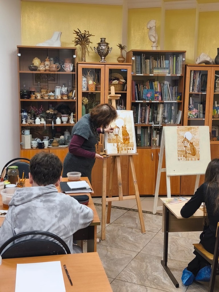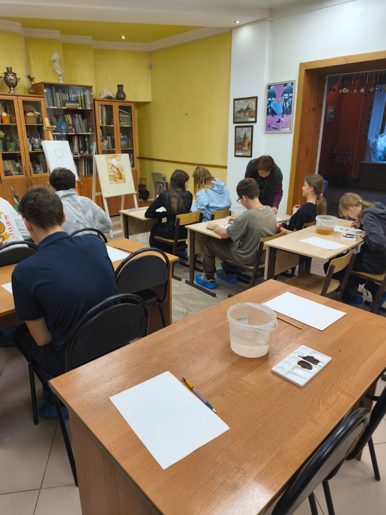 Преподаватель художественного отделения Синицына Юлия Петровна провела мастер-класс "Осенние мотивы" в технике "кофе" для учащихся пришкольного лагеря МБОУ "ЦО 46" п. Ленинский.