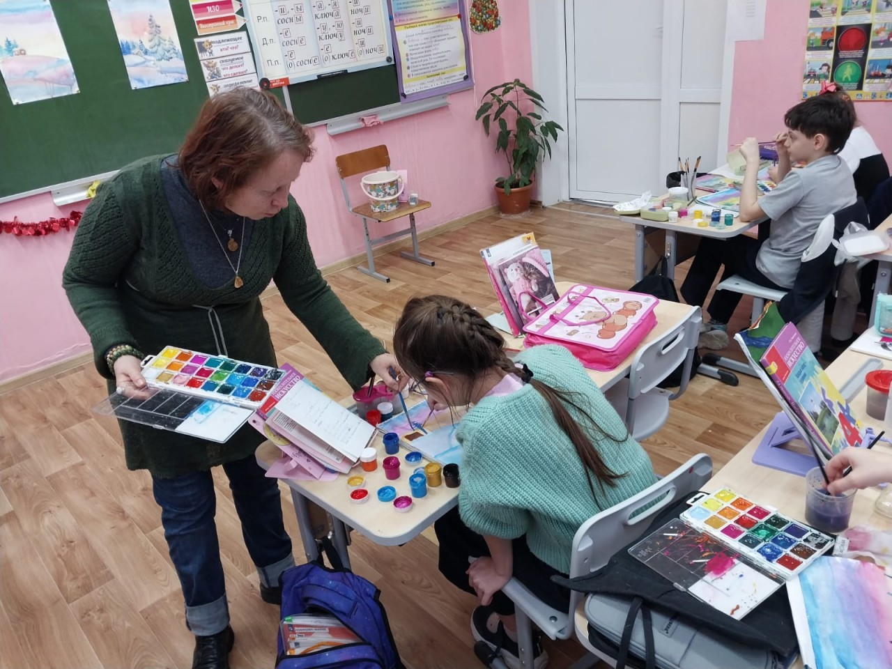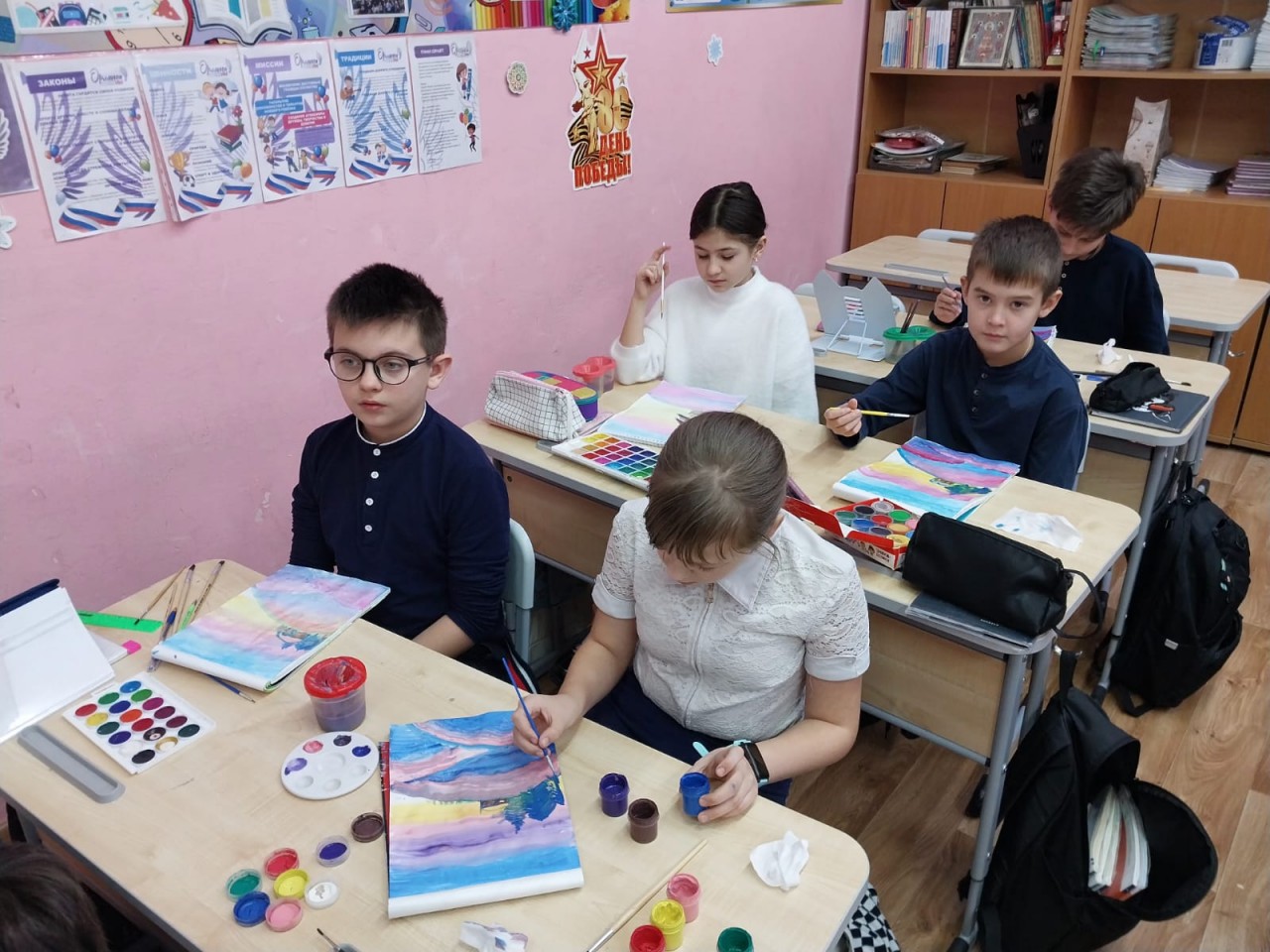 Преподаватель художественного отделения Синицына Юлия Петровна провела мастер-класс "Зимний вечер" для учащихся МБОУ "ЦО 46" п. Ленинский. Благодарим Юлию Петровну за проведенный мастер-класс!