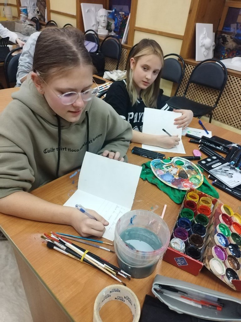 Учащиеся художественного отделения подготовили поздравительные открытки с пожеланиями к Новому году для бойцов СВО