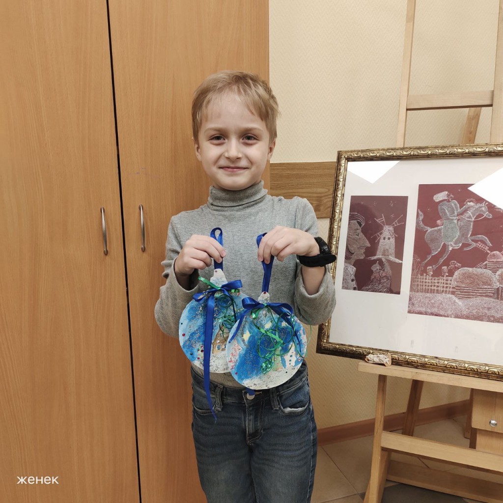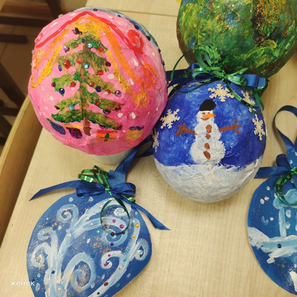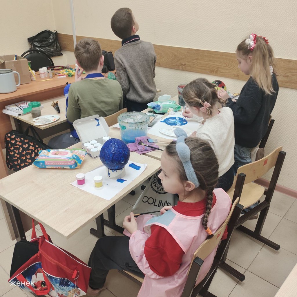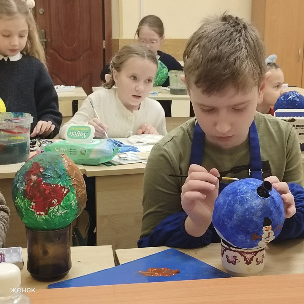Преподаватель художественного отделения нашей школы Ульянова Евгения Владимировна провела мастер-класс "Морозные фантазии" для учащихся младших классов по росписи елочного шара.
