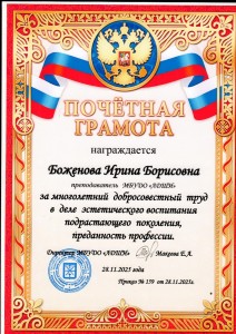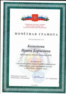 Поздравляем! Преподаватель школы Боженова Ирина Борисовна награждена почетной грамотой за участие в конференции