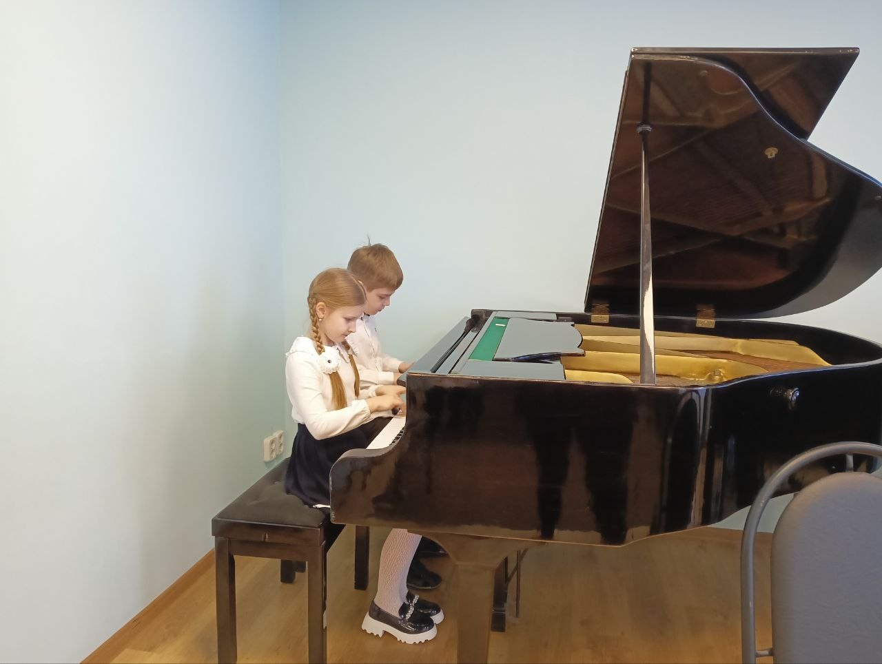 Юные музыканты робко, но очень старательно выводили первые гаммы и несложные мелодии.
