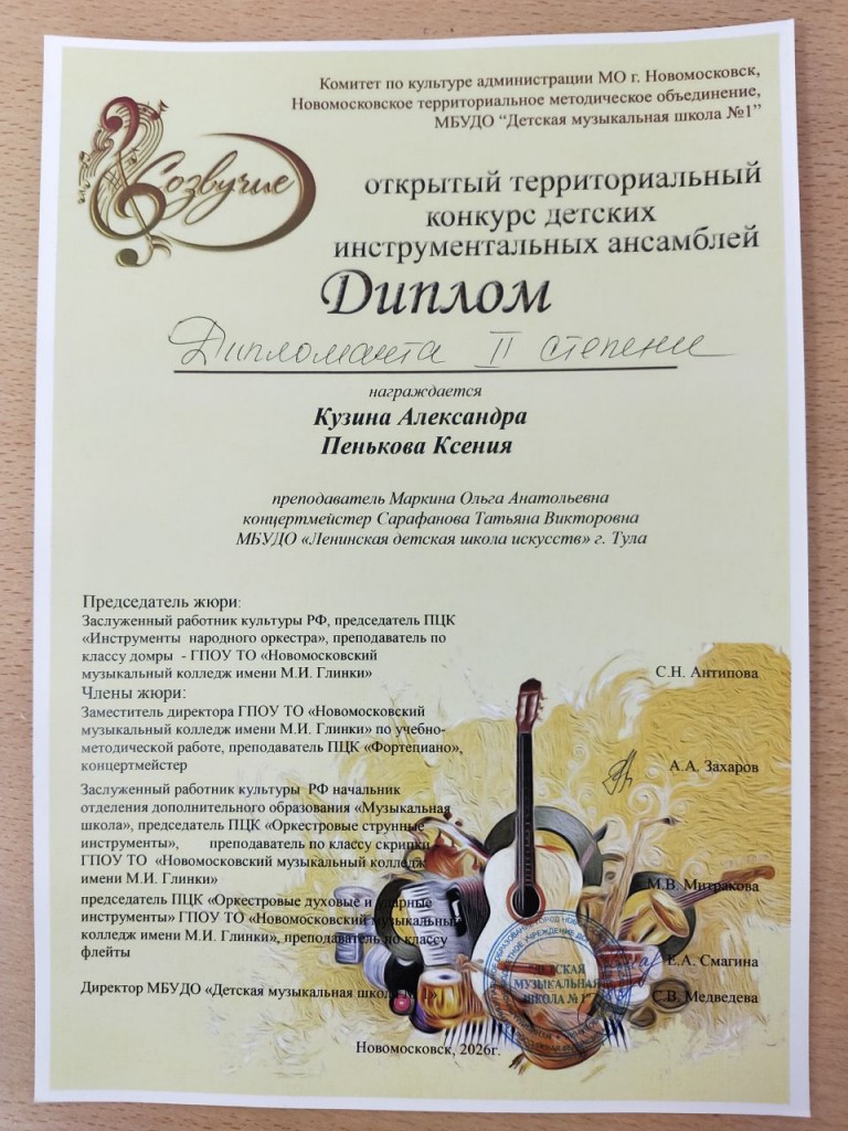 В феврале 2026 года в г. Новомосковск состоялся Открытый территориальный конкурс детских инструментальных ансамблей «Созвучие».