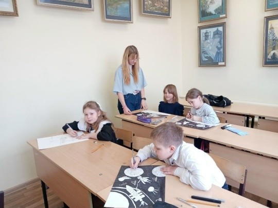 На художественном отделении нашей школы проходили педагогическую практику студенты Тульского колледжа искусств им. А. С. Даргомыжского отделение "Живопись" выпускница художественного отделения Баркова Анна и её однокурсница Бобровская Ульяна, за время практики студентки узнали как подготовить конспект занятия, объяснять новый материал, исправлять ошибки учащихся и, конечно, как общаться с детьми разного возраста.