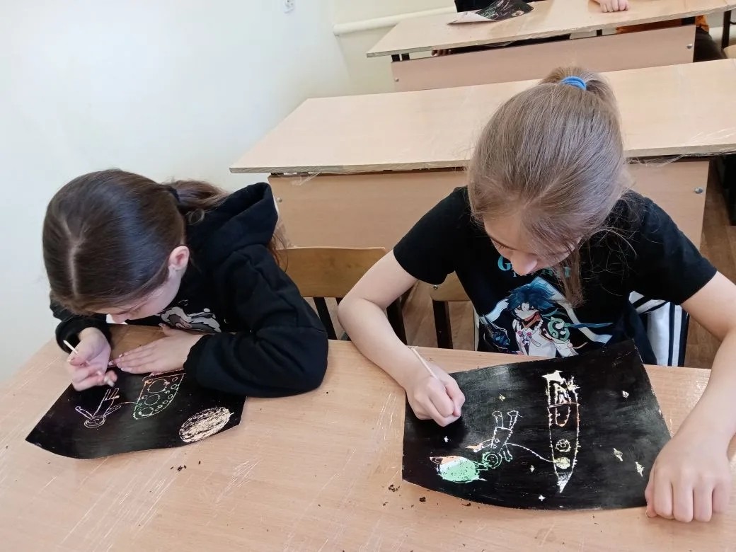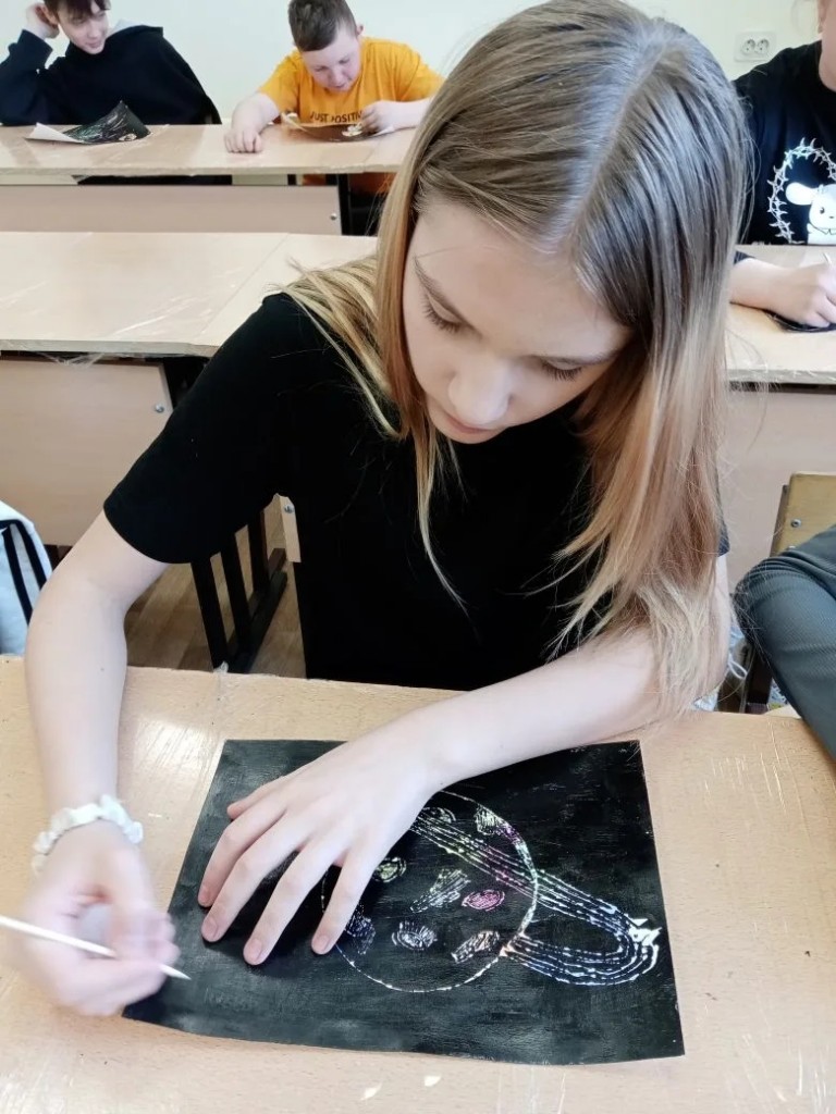 Дети познакомились с техникой граттаж, проявили фантазию. Ребятам потребовалась аккуратность в прорисовывании мелких элементов рисунка. Благодарим Анну Владимировну за интересный проведенный урок!
