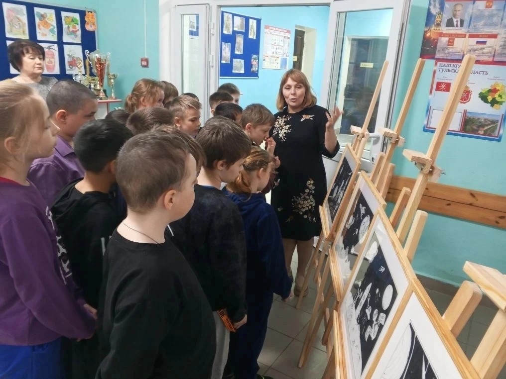 8 апреля в рамках весенней недели добра в преддверии Всемирного дня космонавтики учащиеся художественного отделения нашей школы представили экспозицию своих работ «Космос глазами детей» для учащихся ГОУ ТО "Барсуковская школа им А.М.Гаранина" (школа-интернат п. Барсуки).