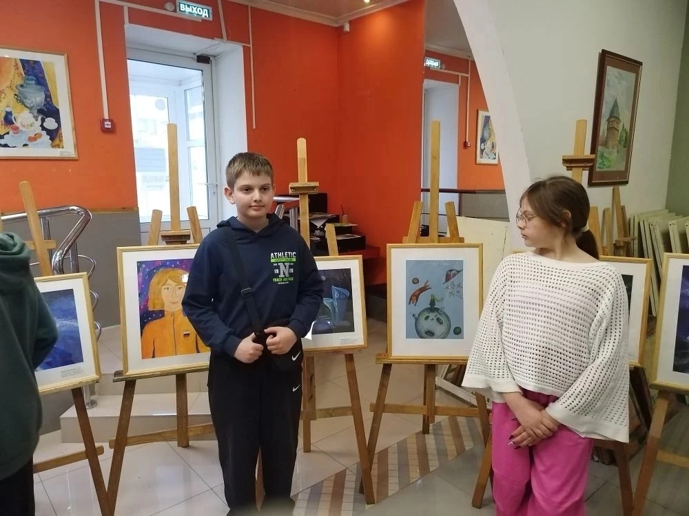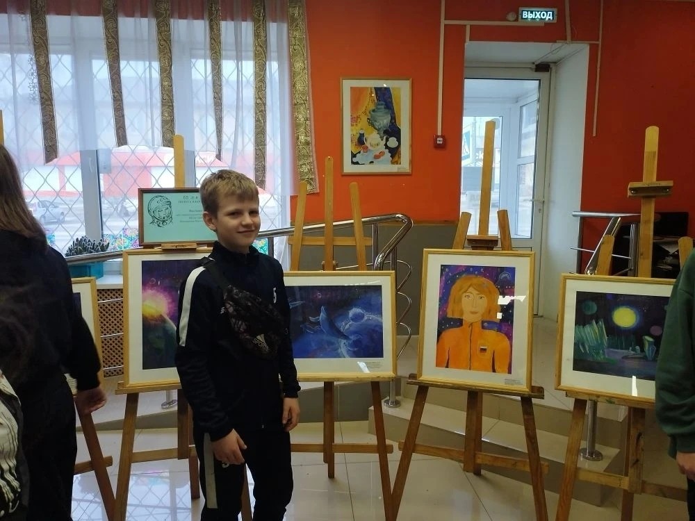 На художественном отделении нашей школы открылась выставка работ «65 лет полета в космос!!!».
